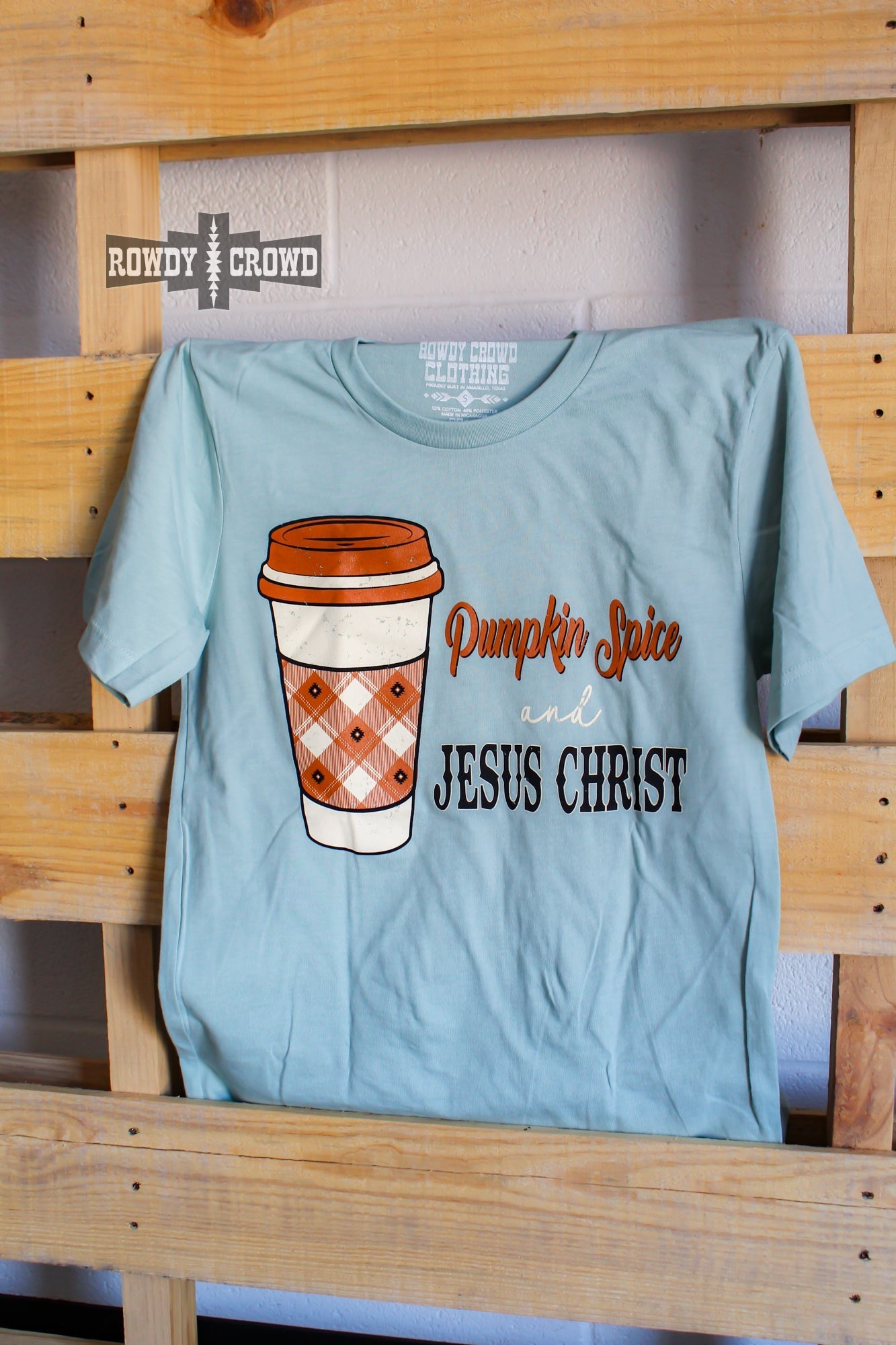 Pumpkin Spice & Jesus Christ getting you through this fall? We have the shirt for you. This adorable graphic is on a beautiful ultra-soft dusty blue tee; perfect for your new favorite fall fit. It is on a heather dusty blue tee that is lightweight, stretchy, and a true-to-size unisex fit and the design is a screen print, so won't fade or peel after washing.