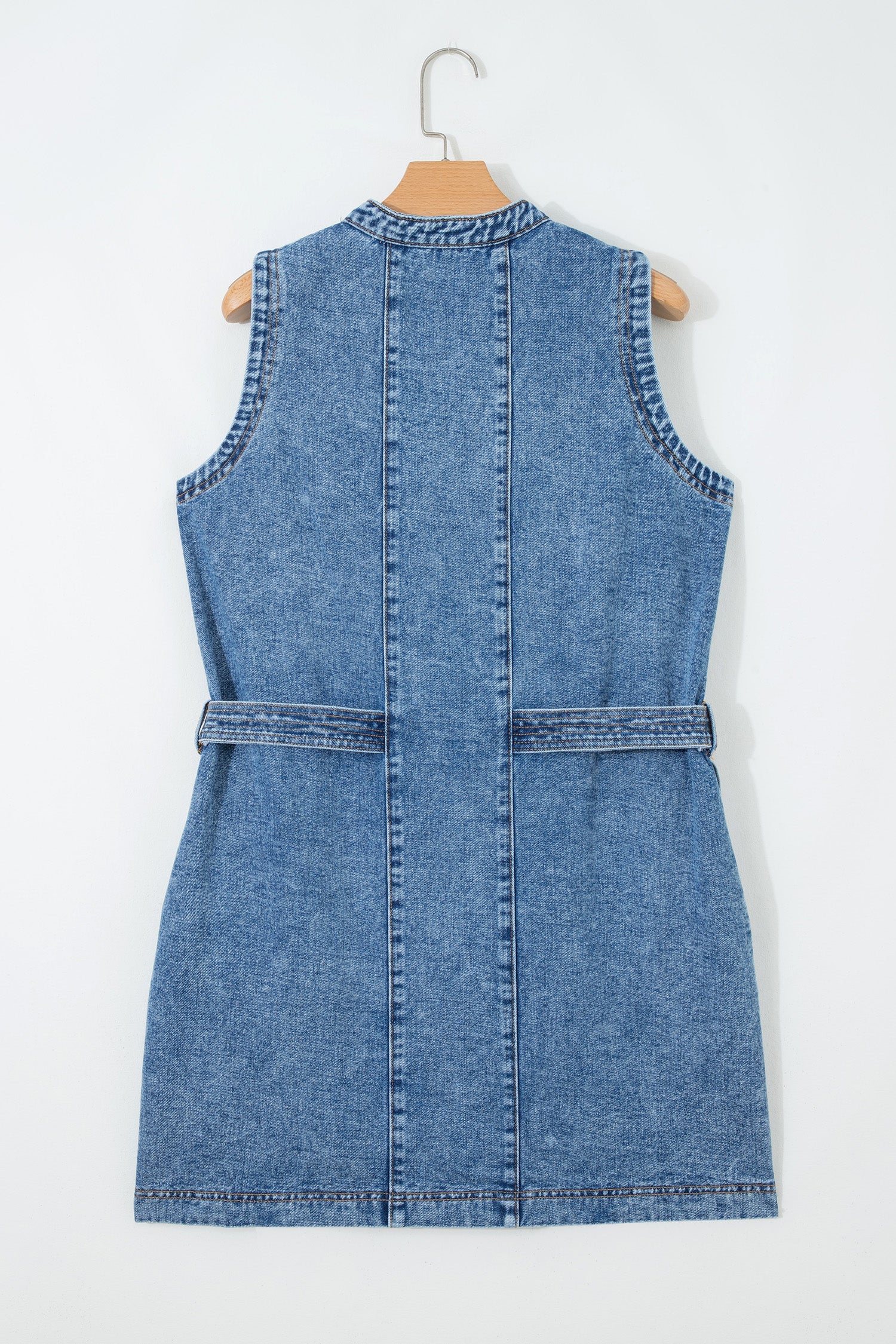 Western Denim Belted Button Down Sleeveless Dress